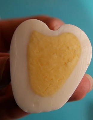 5. Leikkaa kananmuna kahtia ja voilá...sydänmenmuotoinen kananmuna on valmis!